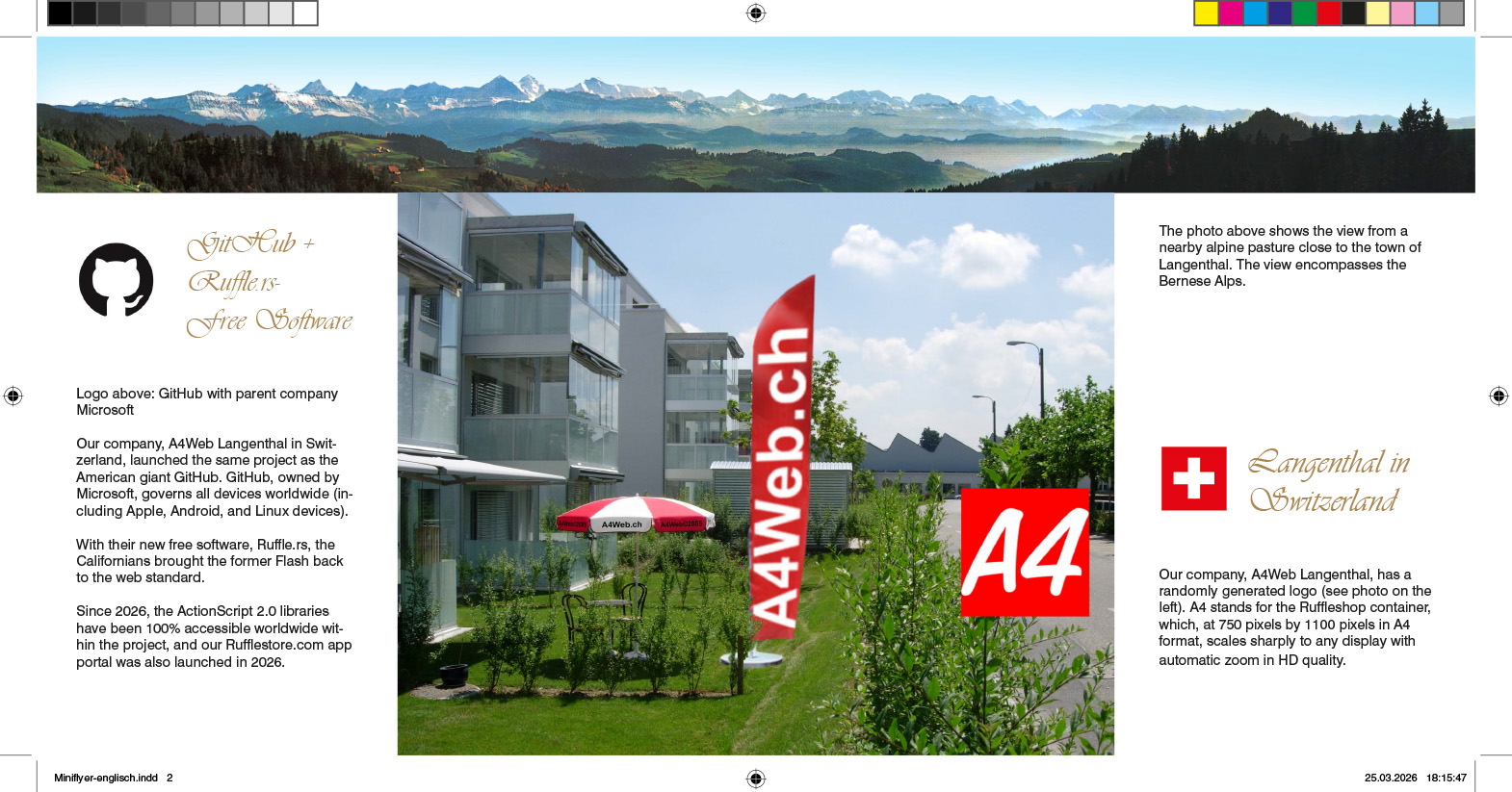 | Unsere Apps basieren auf der Firma GitHub's Ruffle.rs, einer Gratis-Software laufend auf allen Geräten der Welt. Unsere neue App-Software Ruffleshop läuft auf allen Geräten somit gratis und braucht jahrzehntelang keinen Support. Also es braucht keinen Support für das App selbst durch uns und braucht keinen Support auf dem Hosting. Sparen Sie genau 10800.- Euro Franken Betriebskosten (pro Monat 30.-) in den nächsten 30 Jahren. | Our apps are based on GitHub's Ruffle.rs, free software that runs on all devices worldwide. Our new app software, Ruffleshop, runs on all devices free of charge and requires no support for decades. This means no support is needed for the app itself from us, and no support is needed for the hosting. Save exactly €10,800 in operating costs (CHF 30 per month) over the next 30 years. Ruffle = kostenlos / free! (no operating costs) |
